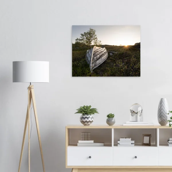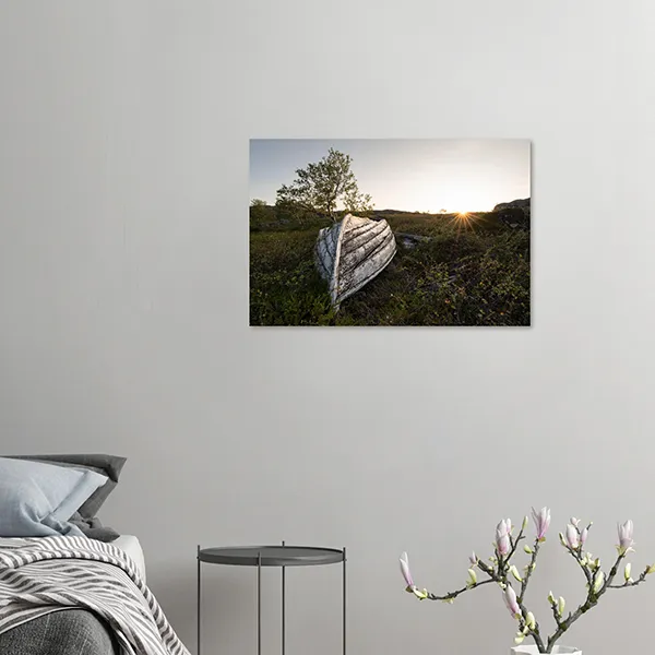 I found this old wooden boat while exploring the tundra in Northern Norway during the summer of 2019. Resting upside down among low birch trees and heather, it caught the last rays of the midnight sun. The weathered wood and soft evening light tell a quiet story of time, solitude, and the resilience of nature in the far north.