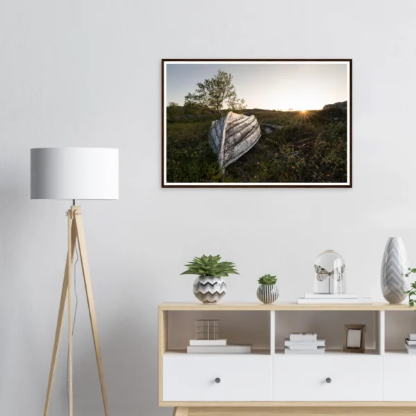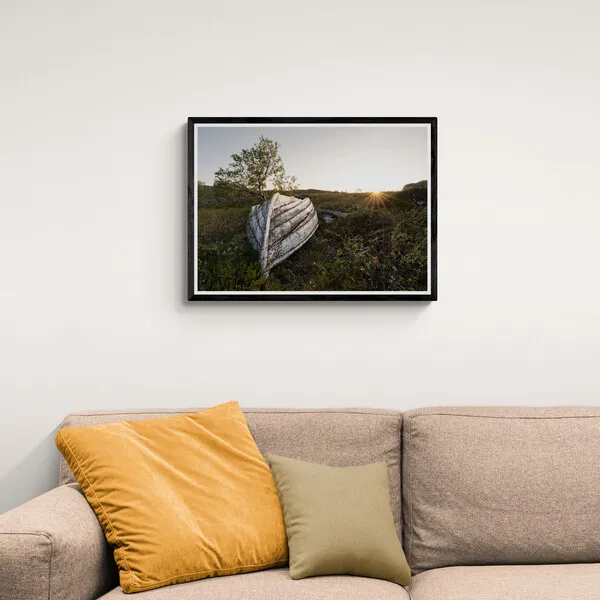 I found this old wooden boat while exploring the tundra in Northern Norway during the summer of 2023. Resting upside down among low birch trees and heather, it caught the last rays of the midnight sun. The weathered wood and soft evening light tell a quiet story of time, solitude, and the resilience of nature in the far north.