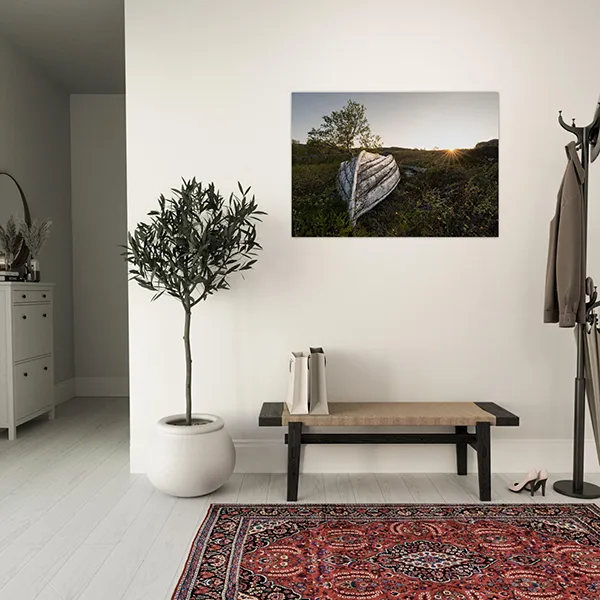 Depending on the selected material — aluminium, canvas, or poster — your artwork is printed on