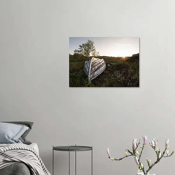 I found this old wooden boat while exploring the tundra in Northern Norway during the summer of 2019. Resting upside down among low birch trees and heather, it caught the last rays of the midnight sun. The weathered wood and soft evening light tell a quiet story of time, solitude, and the resilience of nature in the far north.