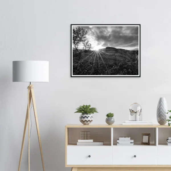 - Framed posters: Premium museum-quality paper mounted in a wooden frame with acrylic glass for protection. Delivered ready to hang and available in multiple frame colors.