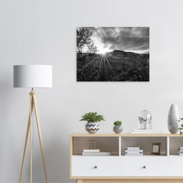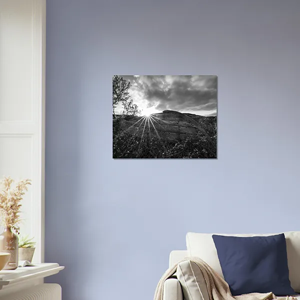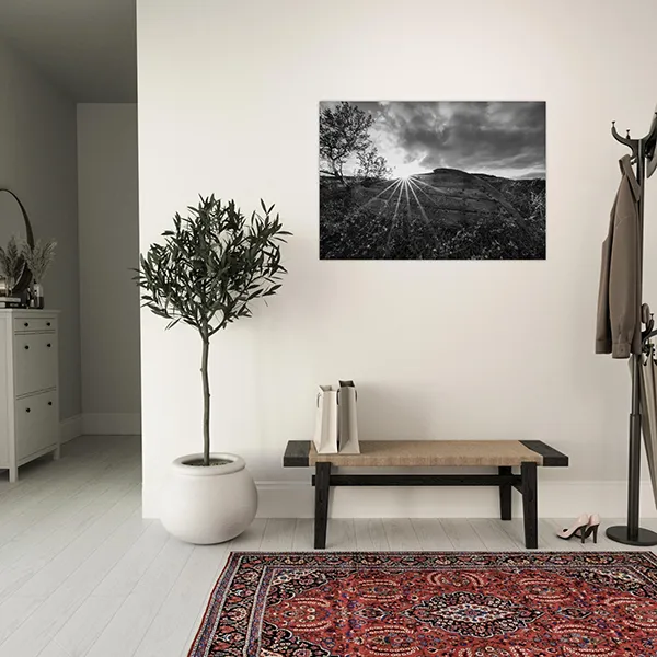 Depending on the selected material — aluminium, canvas, or poster — your artwork is printed on