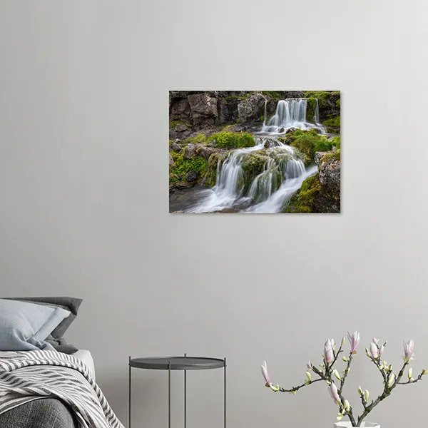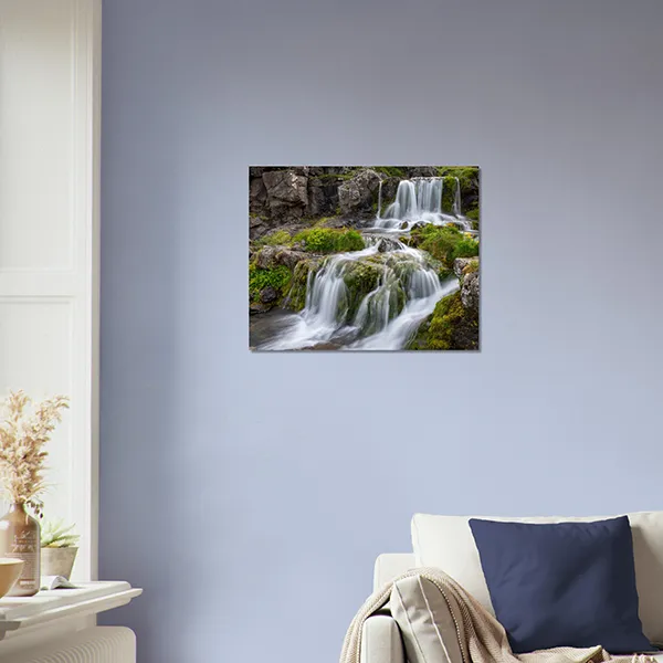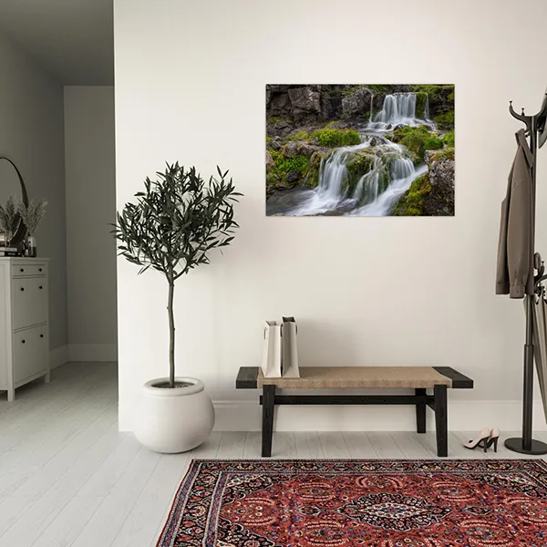 Depending on the selected material — aluminium, canvas, or poster — your artwork is printed on