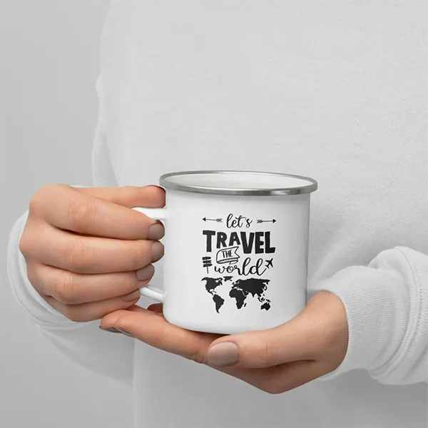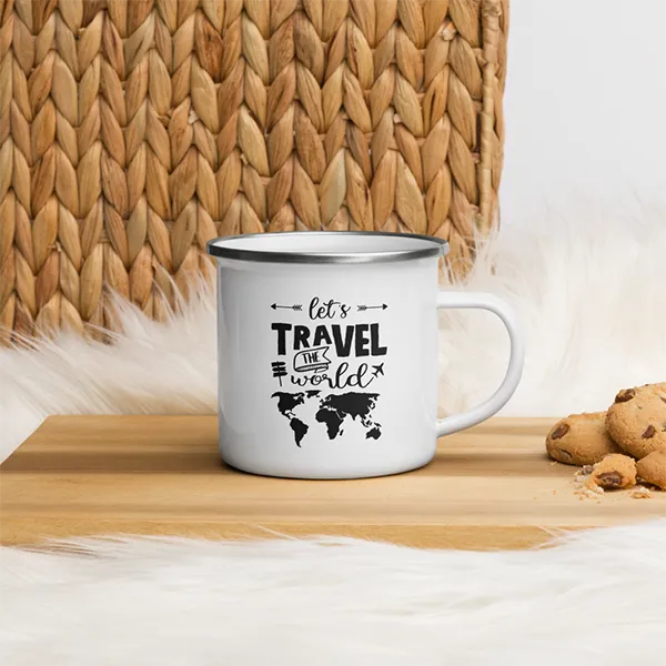 Start every adventure with a mug that inspires you to explore. Our “Let’s Travel the World” enamel mug is lightweight, durable, and made for life on the move — from early-morning road trips to peaceful campfire evenings.