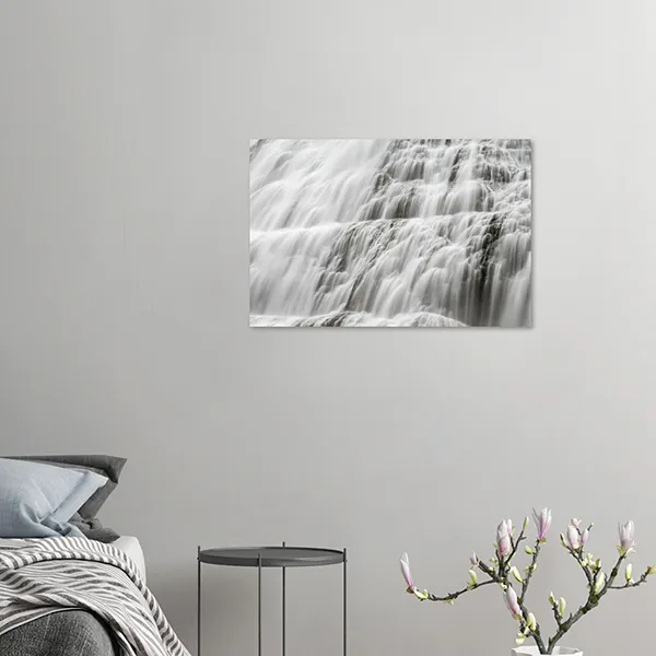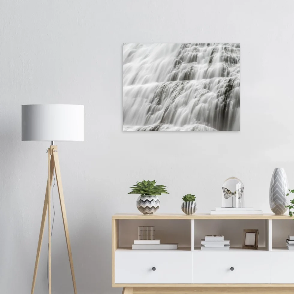 Depending on the selected material — aluminium, canvas, or poster — your artwork is printed on