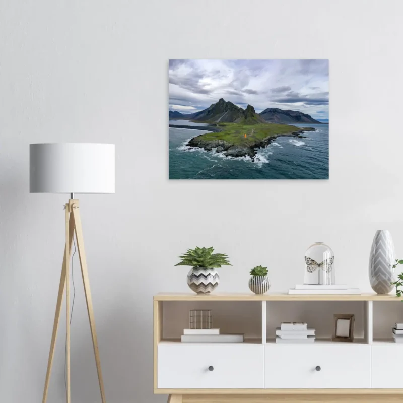 Depending on the selected material — aluminium, canvas, or poster — your artwork is printed on