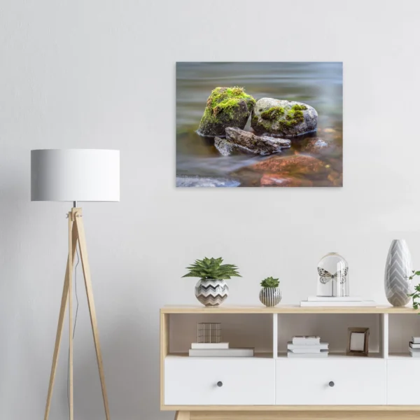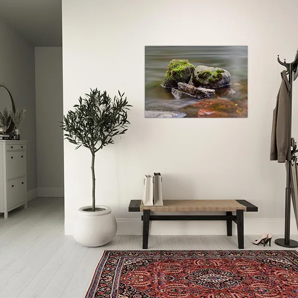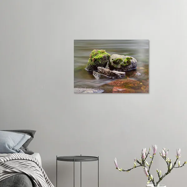 Depending on the selected material — aluminium, canvas, or poster — your artwork is printed on