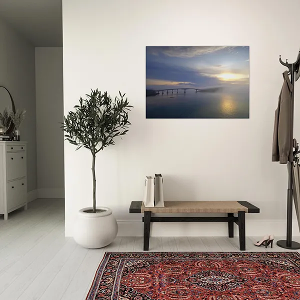 Depending on the selected material — aluminium, canvas, or poster — your artwork is printed on